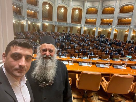 Marți, 14 decembrie, el a venit în Parlamentul României alături de părintele Victorin de la Putna.
